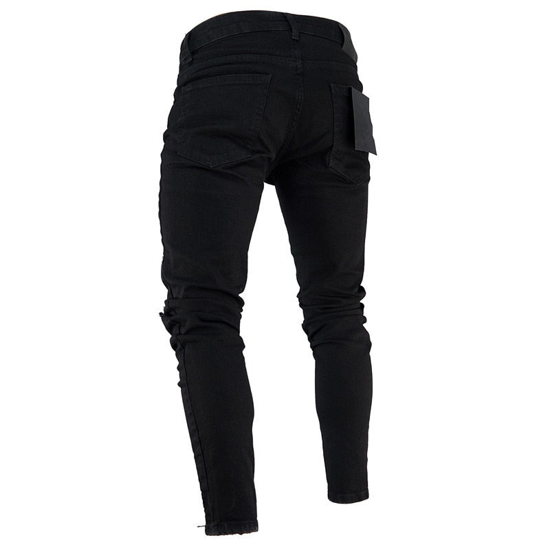 Black Stretch Skinny Fit Bottom zipper Jeans Men
